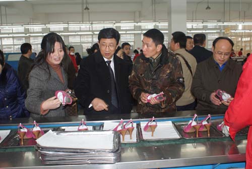 日前,四川省中小企業局局長伍丕光在成都市中小企業局局長李忠仆、武侯區政府副區長羅文川的陪同下到武侯工業園調研,園區黨工委書記曾錦戈、管委會主任文德明及部分鞋業企業負責人就武侯鞋業企業在金融危機情況下的具體困難和“中國女鞋之都”產業集群發展狀況分別作了匯報。在座談會上,伍丕光局長就如何破題發展瓶頸等諸多問題提出了三點要求: