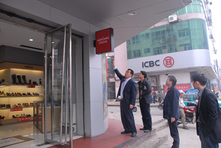 一行領導下車后立刻檢視起店面的外觀,感覺整個櫥窗太老,沒有起到吸引消費者的作用;門頭設計不合理,不夠美觀,甚至店前的水泥臺階也引起了考察團的注意,紛紛建議譚先生聯系集團總部的品牌負責人來設計門面。“經營奧康十年來,我從中學習了很多,無論管理還是銷售技巧,奧康都很出色。”譚先生表示,自己也很有信心繼續擴大奧康在吉安的市場份額。