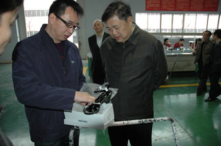 3月11日,由中國輕工業聯合會副會長湯天曙率領的輕工業振興西部調研組來到西部鞋都,對重慶市輕工業運行狀況及中國西部鞋都建設發展情況進行專題調研。重慶市經委輕紡處副處長張玻、璧山縣副縣長朱朝陽等領導陪同調研。重慶奧康置業公司總經理蔣遠武熱情接待了來訪領導并作了情況匯報。