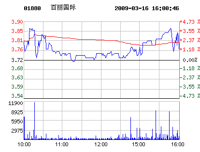 3月16日百麗國際股票行情走勢