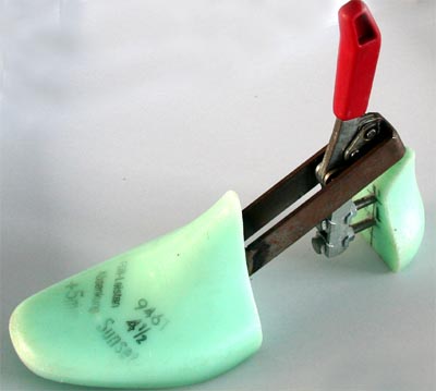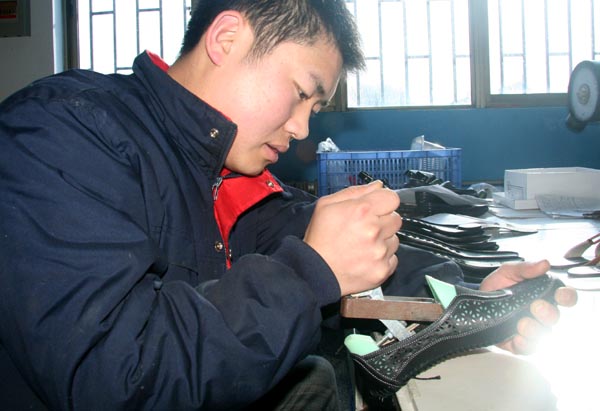 “做過鞋子的人都知道,生產打楦工藝的鞋子,將楦體裝入鞋幫內腔時,需要借助外力,不僅產量低,而且工人負荷重。”技術員楊維剛解釋道,在日常操作中,這類產品的楦體安裝工序較其他產品總能浪費許多時間,影響了工作效率。結合實際情況,技術中心對楦體進行了巧妙的工藝改造,在楦體上安裝了框架座、轉動桿、手壓桿、楦體后跟桿等部件,研發出了可靈活控制的“打楦工藝用鞋楦”。使用時可以先把楦體前身穿入鞋前體內腔,然后向后拉壓手壓桿,通過轉桿軸帶動楦體向后移動,不用借助外力,就可以快捷地裝好鞋楦,大大節省了操作時間,僅這道工序就可以提升工作效率10%以上。”文/技術中心 王文靜