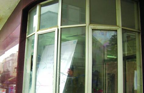 鞋廠保安亭三塊玻璃被擊得粉碎,小圖為現場找到的彈片。