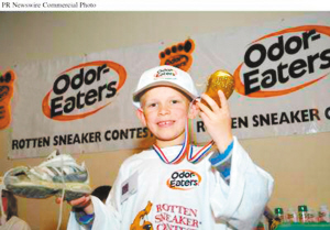 在美國佛蒙特州日前舉行的第34屆“全美臭球鞋大賽”中,七歲男孩喬舒亞·布思勇奪“臭”冠,憑著腳上一雙極具殺傷力的破爛運動鞋,布思不但贏得2500美元的獎金和一次免費的紐約豪華游,還可享受由除臭用品制造商免費提供的一年除臭產品貴賓級待遇。他的臭鞋會放在贊助商的臭鞋紀念館保存。