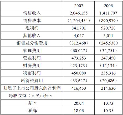 【2007年財年鴻星爾克經(jīng)營狀況分析】