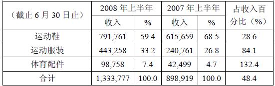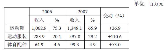 圖表 2006-2007財年鴻星爾克收入及百分比構(gòu)成情況