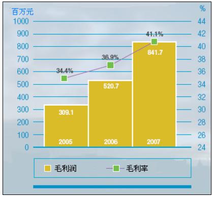 圖表 2005-2007財年鴻星爾克毛利潤及毛利率