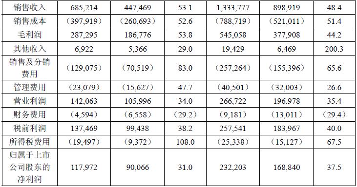 圖表 2007-2008年上半年鴻星爾克綜合損益表