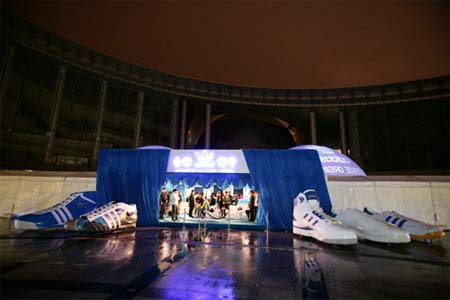 2009年3月27日,中國上海,隨著5雙巨型經(jīng)典運(yùn)動(dòng)鞋齊齊現(xiàn)身上海,adidas三葉草經(jīng)典系列為慶賀經(jīng)典三條紋標(biāo)識(shí)誕生60周年而推出的House Party于上海科技館揭開帷幕。夜幕下,科技館廣場上碩大的球形連環(huán)會(huì)場在投影裝置的渲染下變幻著摩登感十足的動(dòng)態(tài)影像,顯露出色彩盈溢的視覺張力。上千位潮流人士紛至沓來,佩戴起閃爍彩色眼鏡的他們因傳奇般的經(jīng)典三條紋之名而匯聚一所,迎來了一個(gè)非比尋常的魅力之夜。