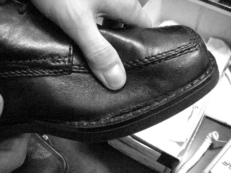 據鄔先生反映,去年12月21日,他在本市中山路上某商場二樓,花3145元買了一雙法國“馬飛仕圖”皮鞋。皮鞋買來后,鄔先生舍不得穿,直到臨近牛年春節出席朋友聚會時,才拿出來穿。