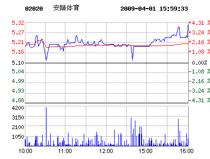 鞋企股市:4月1日安踏體育股票行情走勢