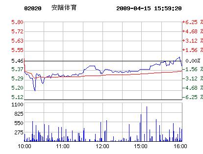 鞋企股市:4月15日安踏體育股票行情走勢