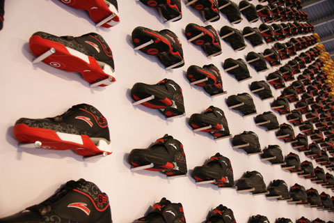 作為中國籃球事業的鼎力支持者,安踏在展會上用別具一格的“籃球館”造型來構建整個展區。展區內,觀眾可以親自體驗安踏為斯科拉、以及歷屆CBA球隊打造的專屬裝備,展區一側,由1000雙安踏籃球鞋組成的巨型鞋墻無疑會為現場帶來震撼的視覺享受。