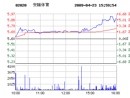 鞋企股市:4月23日安踏體育股票行情走勢(shì)