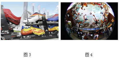 在維也納,阿迪達(dá)斯還展出了它的第三盛景,那就是“不可能的遞送”(Impossible Delivery,圖3)。阿迪達(dá)斯用它的產(chǎn)品完成了稱得上是08年度最好的一次“行為藝術(shù)”展。阿迪達(dá)斯在為其贊助的球隊(duì)里挑選最具代表性的16位球星,為他們?cè)O(shè)計(jì)了16雙宛如轎車大小的足球鞋,每雙鞋子都經(jīng)過單獨(dú)設(shè)計(jì),有自己獨(dú)特的材料、紋理和色彩。同型號(hào)的鞋子將被這些運(yùn)動(dòng)員穿著參加所有的比賽。