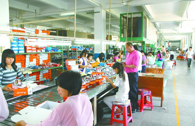 沿著南洪公路,從美林街道到康美鎮、洪瀨鎮、九都鎮的公路兩邊林立著大大小小數百家以鞋服為主的體育用品企業。經過多年的發展與聚集,這里形成了專業分工明確、產業鏈延伸完整的體育用品產業走廊。去年,當金融危機席卷全球時,南安市紡織鞋服產業依舊創下產值71.6億多元、比增28.7%的成績,這源于南安對該市體育用品產業的準確定位。