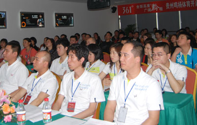 361°貴州分區域總經理張忠躍出席了會議。會上貴州分區域副總經理首先作了會議致辭,強調了貴州分區域要秉著361°企業文化精神,拿出我們每個人多一度的熱愛,百分之百的激情,以361°強大的品牌力量為支撐,來達到361°新的戰略目標。品牌管理中心總監作了“勇往直前,全力加速”的講話,分析了當前貴州地區361°品牌的現狀,并指出了新的發展思路:必須以全新的激情來把握全新的機遇,進而取得全新的進步,明確指出361°品牌是發展的導向和重要思想。
