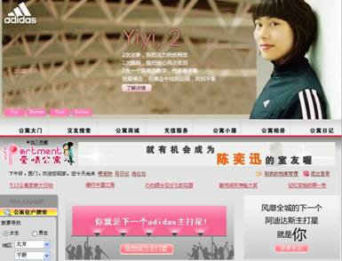 【中國鞋網】記者近日發現,愛情公寓首頁來了個大變臉。有意思,而是參加阿迪達斯力推的“MeMyself”愛情公寓活動中角逐出來的“阿迪達斯下一個主打星”。