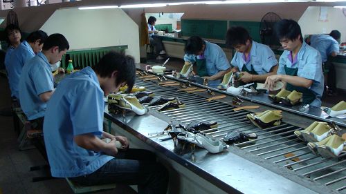 【中國(guó)鞋網(wǎng)】3月18日,記者在名典集團(tuán)有限公司看到,員工們正在車(chē)間里趕制新靚女鞋。