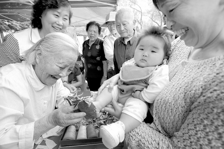 【中國鞋網(wǎng)】昨天上午,家住江東福明新家園社區(qū)的84歲老太太俞愛寶正在給一位嬰兒試穿她制作的虎頭鞋。俞老太制作繡花虎頭鞋已有60多年的歷史。當(dāng)天,俞老太等一批民間手工制作高手會(huì)聚徐戎公園,一起向市民展示了刺繡、布藝、香袋、銅器、紙燈、花色糕點(diǎn)等傳統(tǒng)技藝,為“航運(yùn)江東”文化遺產(chǎn)展示活動(dòng)助興。