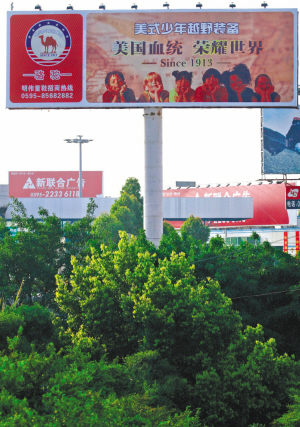 【網(wǎng)】近日,在晉江陳埭高速路口悄悄豎起的一幅戶外廣告牌,吸引了不少路人的眼光,尤其“美式少年越野裝備”字樣顯得特別刺眼。