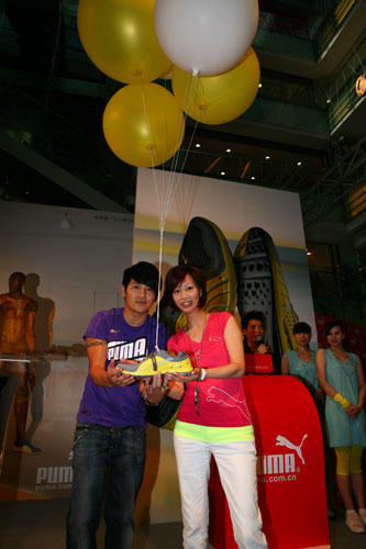曹格與PUMA中國區市場總監謝佩倫小姐一同開啟PUMA LIFT Racer上市儀式