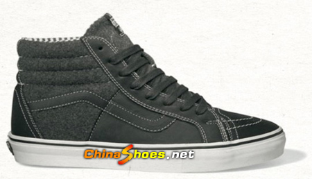 【中國鞋網】加州滑板鞋Vans系列發布了一款最新新品: Vans Vault Wool Collection. 新品有四種款式, 分別是Vans Slip-On, Sk8 High, Old Skool和Chukka Boot. 這四款鞋均系黑色, 鹿皮和羊毛面料, 點綴以乳白色的外底. 如果您癡迷于羊毛面料的鞋子, 還是一個Vans鞋的忠實粉絲, 那么您就應該買一雙或全部Vault Wool鞋. 新品將于2009年的秋冬季在市場上推出.