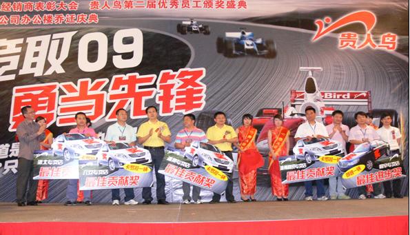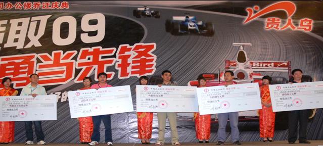 在經銷商頒獎典禮在結束后,貴人鳥安徽分公司優秀員工的頒獎儀式隨之展開。08年度安徽分公司各部門工作人員表現突出,盡職盡責,評優人數超過以往,達到30名。獲獎經銷商為優秀員工頒獎,體現出公司上下一心,齊心協力,競取09 ,再創輝煌的決心和意志。