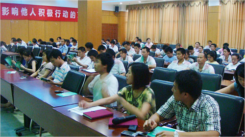 潘光來老師首先介紹了國家及溫州市的安全生產形勢,肯定了奧康開展“安全生產月”活動的及時性和重要性,接著他詳細講解了安全基礎知識,尤其是涉及企業(yè)的消防安全、用電安全、機械安全等方面的預防和救治知識,并用圖文結合的形式生動形象地講解了鞋服等十大行業(yè)的危害特點以及防范措施。