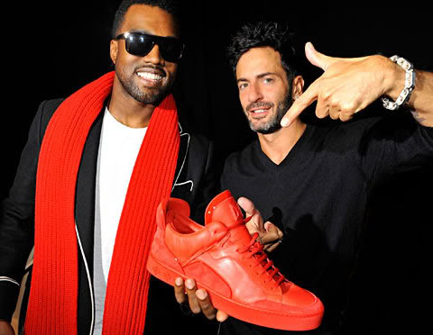 Kanye West手拿最新款與LV合作的潮鞋,售價約為870美元