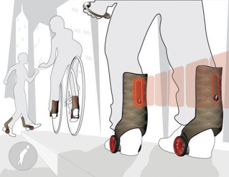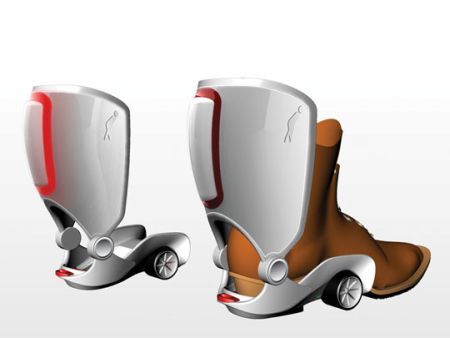 【中國(guó)鞋網(wǎng)】現(xiàn)代都市的交通擁堵現(xiàn)象日益嚴(yán)重,面對(duì)出行問(wèn)題,每個(gè)人都會(huì)遇到一些略顯尷尬的選擇。打個(gè)比方,從居住地到目的地有2公里遠(yuǎn),步行太累,而開(kāi)車又有些浪費(fèi);選擇公共汽車,走到車站的路程也不見(jiàn)得短。這個(gè)時(shí)候要是有一個(gè)靈巧、輕便的代步工具就好了。那么這款遙控代步鞋套肯定適合你,它配有發(fā)動(dòng)機(jī)和變速箱,通過(guò)手上的遙控器控制剎車和啟動(dòng),為保證使用者的安全,還貼心地在鞋套后側(cè)設(shè)置了尾燈。它可以很方便地從滑行狀態(tài)轉(zhuǎn)變?yōu)椴叫袪顟B(tài),不影響使用者的正常行走。時(shí)速達(dá)每小時(shí)10英里,適合工作地點(diǎn)離家不遠(yuǎn)的上班族使用。