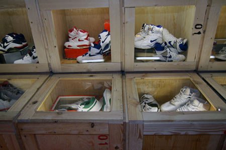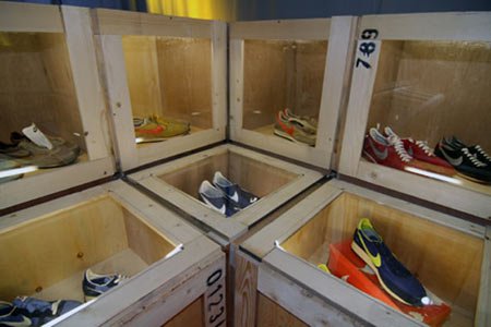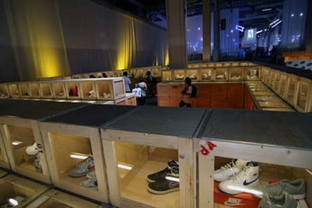 【中國鞋網】日前,在西牙巴塞羅那“外部空間”(Outerspace)舉辦了一場旨在文化交流的球鞋世博會。正如大家在“鞋”門兒為您展示的圖片中所看到的,在這次展會上展出的鞋子都被裝在木制、帶有玻璃門的展示柜里。而參展的鞋子種類也品相繁多,近乎跨越了過去20年的歷史,有些元年的鞋子還保留著當年的包裝盒。正如大家所看到的,Nike在這次展會上再度顯示了其霸主的地位和氣勢,他們在元年球鞋和最新款式兩方面的展示上,數量都占據了第一位。除Nike之外,阿迪達斯、銳步、愛世克私、匡威、新百倫等球鞋的展示也非常吸引人關注。Vans和Airwalk的老款滑板鞋同樣吸引了不少眼球。