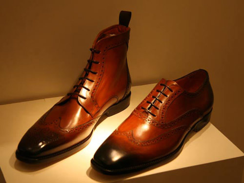 CAFÈCHANTANT.該品牌男鞋充滿樂觀而有趣的情調,是20世紀初期鞋型的審美取向。尺寸合腳而且鞋底鞋跟也是力求越小越低越好。鞋的用料非常豐富,同時兼顧到時尚與現代感,光滑、無雜質的真皮與小牛皮的運用與表面設計有復雜紋理的鞋面形成鮮明對比。頻繁的應用立體與印花圖案也是其特點之一。式樣有些是錐形設計,而有的便鞋則借鑒了一些優雅設計風格。有些是圓頭的,有些是馬鞍形的鞋頭,還有一些是寬頭鞋。值得一提的是,這些鞋都非常柔軟,那種裹腿的騎馬靴也不例外。