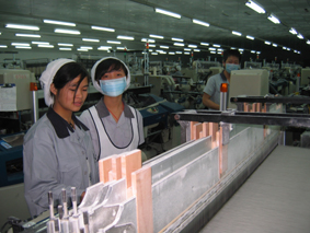 圖為宏太紡織生產(chǎn)車間里的先進設(shè)備