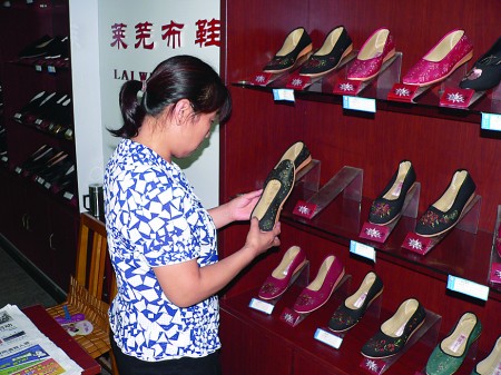 這些新興的鞋業(yè)公司,有的在包裝形式上創(chuàng)新,挖掘品牌的文化內(nèi)涵,有的創(chuàng)新布鞋的種類樣式。不過,這些鞋業(yè)公司規(guī)模比較小,有的只是提供材料、規(guī)格,向加工者收購布鞋!拔覀児疽荒甑牟夹N量有幾萬雙,雖然數(shù)量不多,但已經(jīng)是屈指可數(shù)了!本o跟鞋業(yè)總經(jīng)理劉俊成說,一雙萊蕪布鞋賣幾十元,但利潤并不多,有的廠家布鞋賣到三四百元,可銷路卻不暢,單個企業(yè)沒能力做大規(guī)模廣告宣傳,銷售只能靠幾個門店,打不進大商場、大超市,更不用說遠銷外地了。
