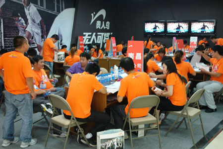 此外,記者在現場看見,本次訂貨會展館布局圍繞著貴人鳥2009年全新品牌理念“生活,就是一種運動”展開,分為生活館、都市館、綜訓館、網跑館、配件館、模擬店,整個場館的設計理念、風格都彰顯出貴人鳥生活方式的延伸展現。