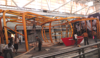 蜘蛛王集團把展廳布置成蜘蛛的形狀