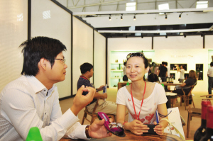 上午對(duì)接展會(huì)開幕后,名店采購商立即抓緊時(shí)機(jī)與溫州鞋企“相親”