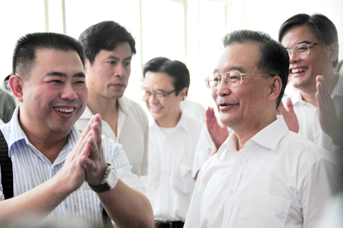 “我們又見面了,今年企業情況怎么樣?”23日上午,來到溫州民營企業代表奧康集團考察調研的溫家寶總理,剛一下車,看到等候在門口的王振滔,就了解起企業的發展情況來,一句簡短的問候話也迅速拉近了大家的距離。