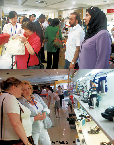 外國使節一行還實地考察了康奈現代化生產車間和職工俱樂部,他們對康奈先進的技術裝備、精湛的制作工藝嘆為觀止,對康奈風光秀麗的廠區環境和以人為本的企業文化大加贊賞。在康奈旗艦店,質量精良、時尚亮麗的皮鞋、箱包成為使節們爭相搶購的對象。肯尼亞駐華使館的工作人員喬瑟法特·維迪紐選中一款康奈最新的商務舒仕鞋,試穿后,連連說:“很合腳,很舒服!”此后,他又一口氣買下其他三雙康奈皮鞋和一件箱包。加拿大駐上海領事黃文楚是移民華裔,他熱情地對工作人員說:“我早就知道康奈這個品牌,給我選最好、最新的鞋款,我樂意給你們做宣傳!”由于時間安排緊湊,雙手提滿康奈產品的使節們意猶未盡地踏上了離別的班車……