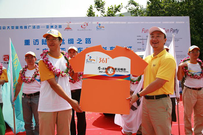 自從成為2010年廣州亞運會高級合作伙伴以來,361゜把推廣和宣傳亞運視為自己的使命和職責。這次亞洲之路的中亞之行,361゜和哈薩克斯坦以及塔吉克斯坦的國家奧委會將在這兩個國家舉辦“361゜亞洲之路趣味跑活動”。屆時,當地少年兒童將身著361°運動服,以趣味跑的形式宣傳2010年廣州亞運會,吸引當地人民對亞運的關注,吸引更多人為亞運喝彩!亞組委市場開發部副部長袁越對此舉給予很高的評價,她說:“我們相信本次活動必然在中亞地區掀起一股亞運熱潮,并將2010年廣州亞運會的理念和廣州人民的熱情邀請帶給沿途各國人民!”
