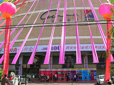 地理位置 位于西安市鐘樓與鼓樓之間,東、西、南、北四條商業大街的交匯點,為西安市最繁華的中心。