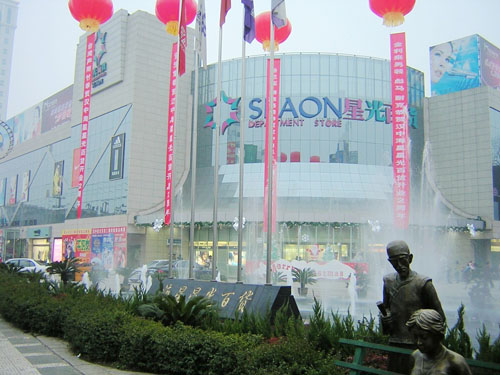 2004年12月,海星集團(tuán)投資1.2億元的漢中海星星光百貨應(yīng)運(yùn)而生,以“百貨+超市”的最佳業(yè)態(tài)組合進(jìn)入漢中商海。商場地處繁華商圈核心地帶,有3條主要公交線路經(jīng)過。氣勢雄偉,體量恢弘,經(jīng)營面積逾30000平米。商場外圍建有超大型停車場,樓體點(diǎn)式玻璃幕墻,并建有陜南首個匯粹古今中外,集音樂噴泉、藝術(shù)雕塑于一體的大型文化休閑廣場。商場內(nèi)部雙層玻璃天頂,光線充足,還包括8部上下自動扶梯,一部直達(dá)電梯,一部觀光電梯。商場主體結(jié)構(gòu)3層,1層主營超市、化裝品、珠寶首飾、皮鞋、皮具等;2層主營品牌男裝時尚女裝;3層主營運(yùn)動休閑裝、時尚少女裝、內(nèi)衣、針織羊毛羊絨、男女士單品、兒童服裝玩具、特色小吃等。