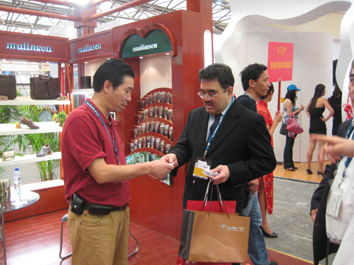 中國(guó)鞋網(wǎng)10月10日訊,2009年9月2日,地處上海浦東區(qū)的新國(guó)際博覽中心人頭攢動(dòng),萬(wàn)人云集,由中國(guó)皮革協(xié)會(huì)主辦的中國(guó)國(guó)際鞋類展在這里隆重舉行。展會(huì)吸引了來(lái)自美國(guó)、德國(guó)、法國(guó)、意大利、澳大利亞、巴西、埃及、西班牙、墨西哥等眾多國(guó)際參展團(tuán)前來(lái)參展。在展廳三號(hào)館,仿紅木裝修的木林森展位獨(dú)樹(shù)一幟、分外醒目,再加上豐富的產(chǎn)品、完美的做工吸引了俄羅斯采購(gòu)團(tuán)、東南亞采購(gòu)團(tuán)等來(lái)自世界各地的鞋業(yè)采購(gòu)商的眼球。