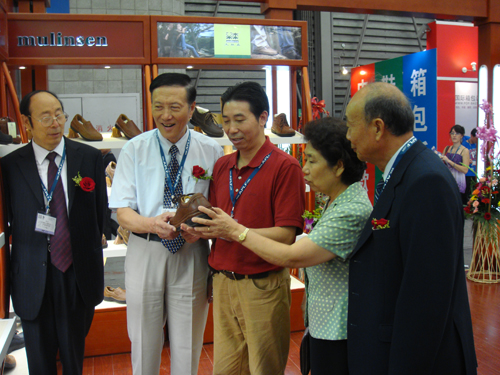 木林森為廣大采購(gòu)商和參觀者準(zhǔn)備了豐富的禮品和齊全的宣傳資料。輕工協(xié)會(huì)會(huì)長(zhǎng)對(duì)木林森的品牌和產(chǎn)品給予了高度評(píng)價(jià)。陳會(huì)長(zhǎng)拿著木林森的一雙高檔休閑鞋愛(ài)不釋手,興趣盎然地向在場(chǎng)的公司負(fù)責(zé)人張總詳細(xì)了解制作工藝和如何訂單、出口貿(mào)易等具體細(xì)節(jié)。木林森執(zhí)行董事總經(jīng)理張?bào)闫浜洼p工協(xié)會(huì)會(huì)長(zhǎng)輕松交談了十幾分鐘并合影留念。