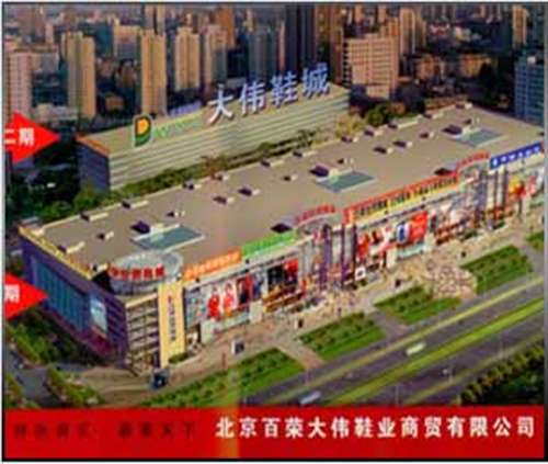 北京大偉鞋城營業面積20000平方米,近千個攤位,千余品牌,萬種款式。主要經營鞋類,是中低檔鞋批發的交易中心,產品覆蓋華北、西北、東北等地。是一個品牌化、專業化、規模化為一體的較大型批發商業企業。
