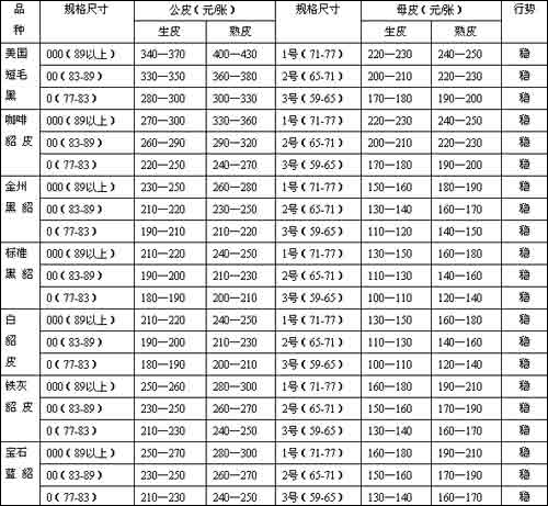 2009年10月國產貉皮行情表