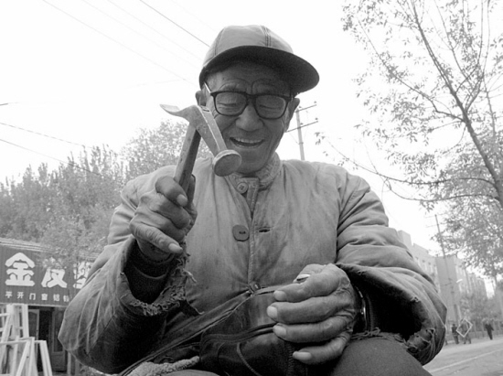 按理說,自己有1000元左右的退休金,孫子又有低保,80多歲的郭維順也該休息休息了,可習慣了勞動的郭老,就是不肯放下手中的修鞋工具。多年來,除了下雨,郭維順幾乎每天都出來修鞋,有時遇到鄰居和小區居民前來修鞋,郭老就慷慨地不收費。