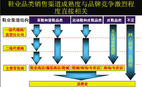 中國鞋網10月30日訊, ■不同的品類,因為其品牌競爭激烈程度不同,企業所選用的銷售渠道也有所不同