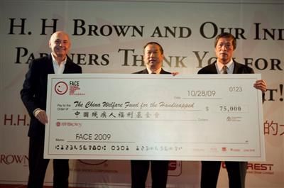 中國鞋網11月04日訊,2009年10月28日,鞋業龍頭H.H.Brown繼成功舉辦四屆慈善高爾夫球邀請賽之后,又再次刮起慈善旋風,結合達芙妮以及來自全球100多家的企業代表匯聚一堂,在中山市長江雅居樂高爾夫球場拉開了“2009FACE 鞋類協會慈善活動”序幕。自2005年首度舉辦至今,FACE已為中國的數個慈善機構籌募了超過300萬美元善款。而今年的FACE鞋類協會慈善活動是與達芙妮國際共同舉辦,更是讓活動的規模與影響力加大,所有募得的善款將全數捐贈給數個慈善機構,以援助中國的弱勢族群以及鞋業界需要幫助的人。其中,受捐助的慈善機構包括 “中國行動計劃”﹑“中山青年志愿者協會”﹑“宋慶齡基金會”﹑“210國際業基金會”﹑“中國殘疾人福利基金會”等五家福利機構。