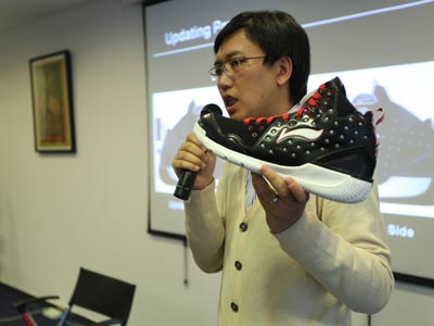 中國鞋網(wǎng)11月11日訊,在NBA09-10賽季開始之際,李寧Q4新品——巴朗∙戴維斯專屬戰(zhàn)靴BD1正式亮相。11月6日,李寧公司為配合產(chǎn)品發(fā)布,特舉辦BD1球鞋媒體試穿體驗(yàn)活動。來自全國各地的二十余家專業(yè)體育媒體和兩位CBA重磅外籍教練受邀參加。知名體育評論員蘇群、楊毅、楊健等近三十位媒體人在外教的指導(dǎo)下, 積極投入到專業(yè)籃球訓(xùn)練營當(dāng)中去,并展開了一場激烈的媒體籃球賽,最終黑方隊(duì)以微弱優(yōu)勢取勝。通過記者們的實(shí)戰(zhàn)體驗(yàn),李寧BD1球鞋的專業(yè)性能受到普遍贊揚(yáng)。